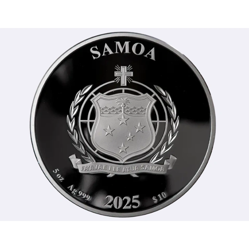 "В честь Папы Льва XIV» - Самоа, 10 $, 2025. г., 99,9% серебряная монета. 155 г.
